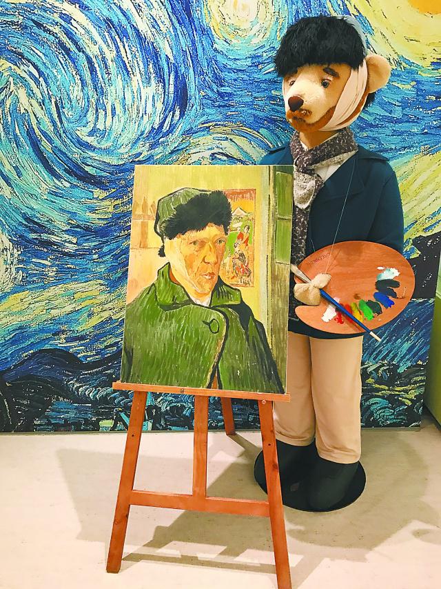 有意思的是,泰迪熊还是艺术作品的载体。当小熊们或化身梵高自画像(如图②),或装扮为蒙娜丽莎,或成为米开朗基罗作品《创世纪》中的主人公,《最后的晚餐》中耶稣和十二门徒的形象都变换成神态各异的小熊,罗丹《思想者》的主角如果是一只弯腰、屈膝、拖着下颌沉浸在极度痛苦中的泰迪熊,你还认得出这些名作吗?